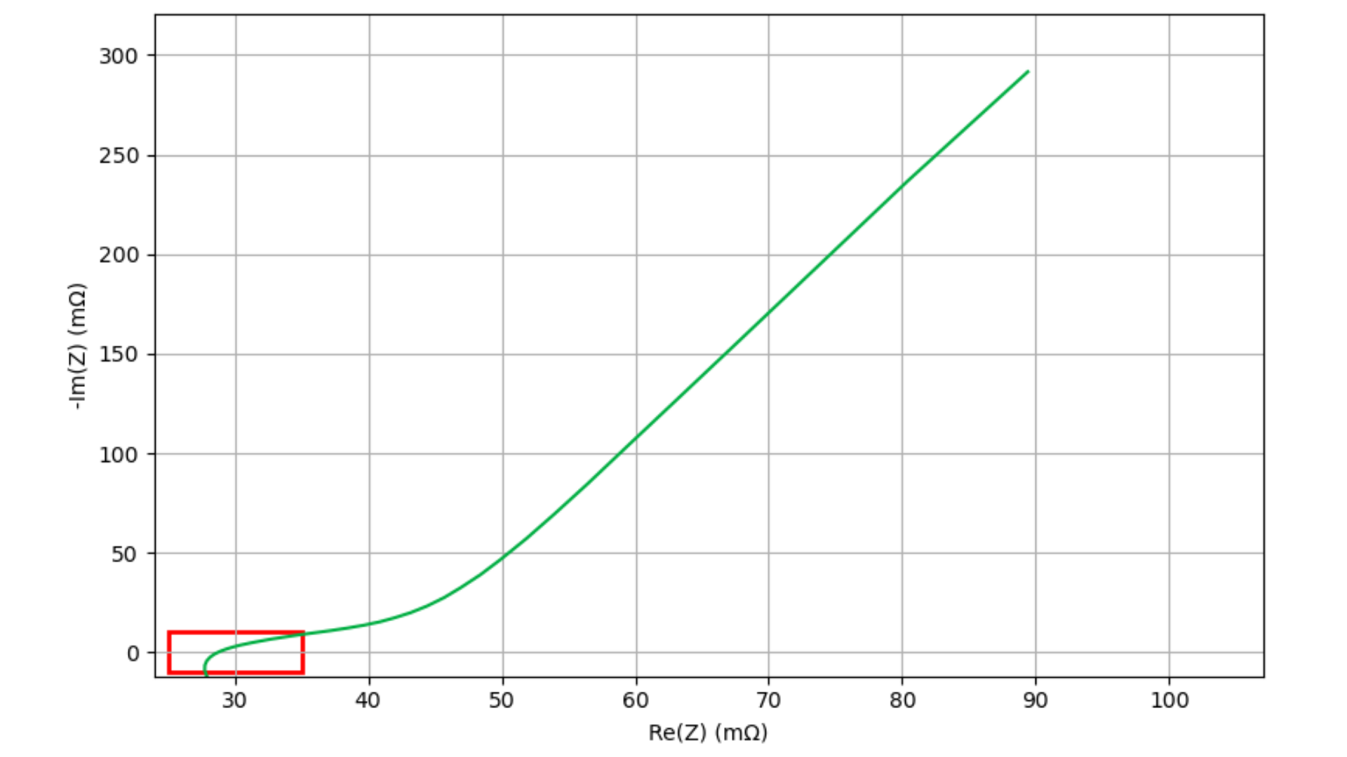 Each EIS scan generates complex impedance data, consisting of real (Re(Z)) and imaginary (Im(Z)) components, typically visualized using a Nyquist plot, where –Im(Z) is plotted versus Re(Z).
