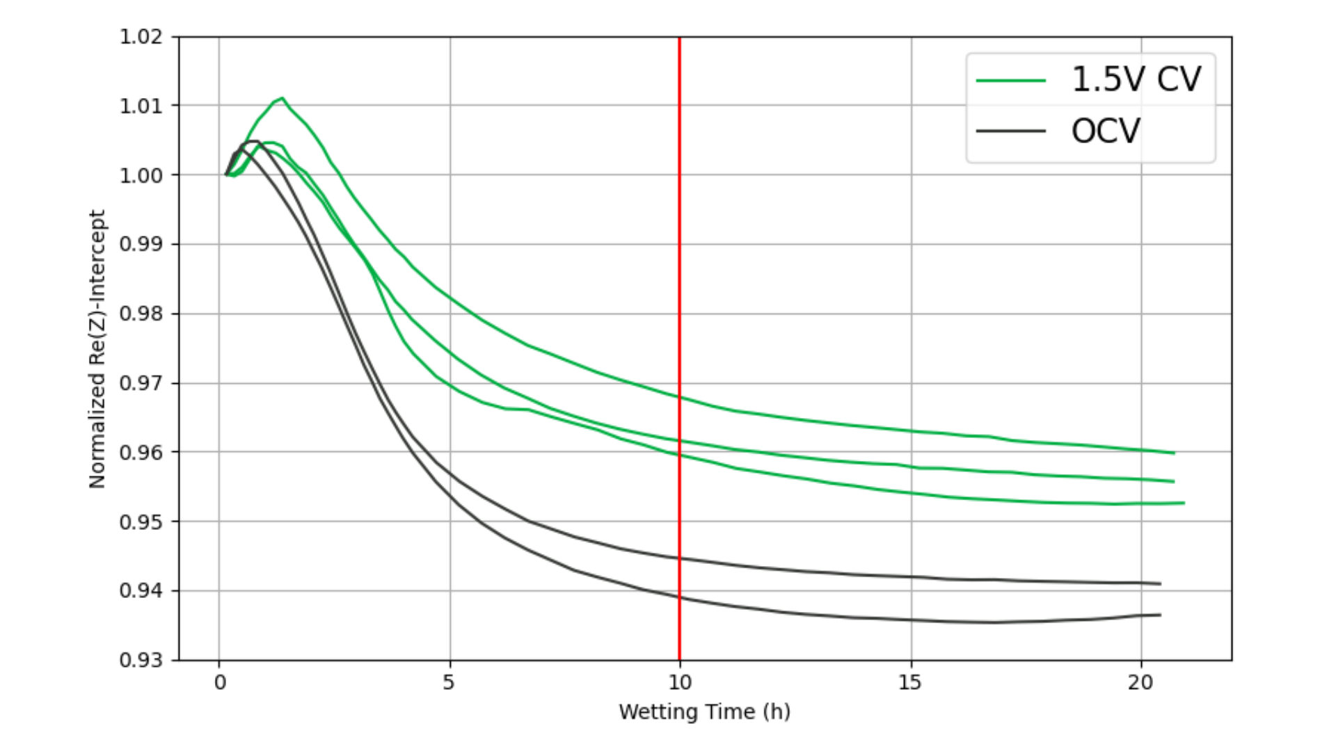 By periodically performing EIS scans during wetting, this resistance evolution can be tracked in real time, enabling direct measurement of wetting progression.